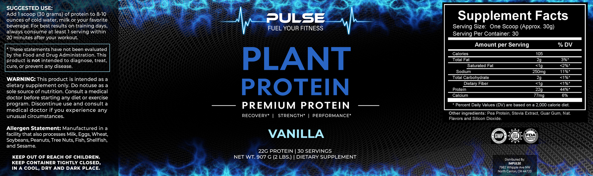 - 22g of Pure Plant Protein: Sourced from yellow peas for high-quality, complete protein to fuel muscle repair and growth.